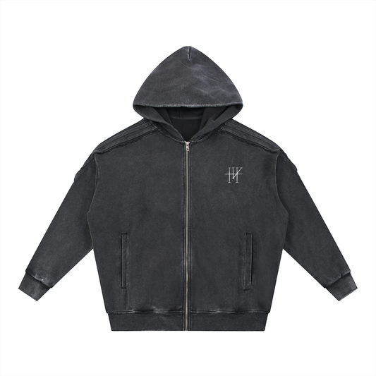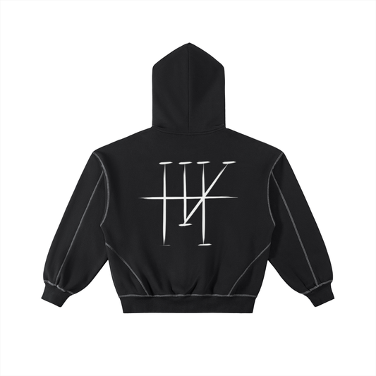 HVSH II Contrast-Stitched Boxy Fleece Zip Hoodie (Undersized)